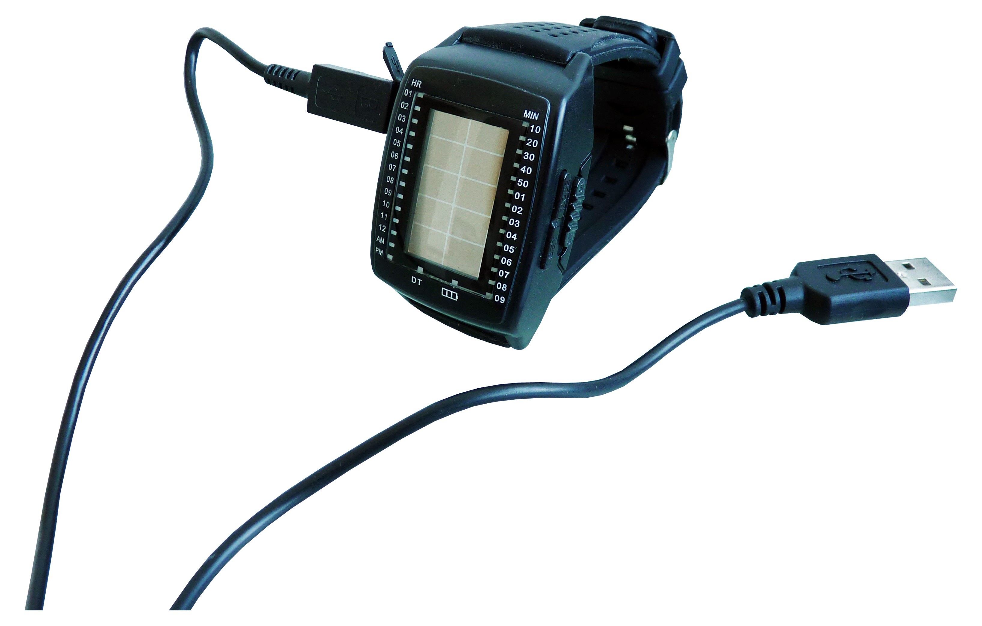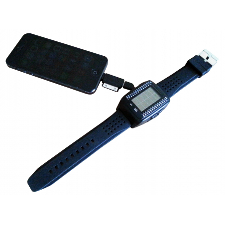 La montre solaire avec chargeur de smartphone intégré est un outil de survie, grâce au soleil, vous pourrez consulter l'heure et recharger votre téléphone.