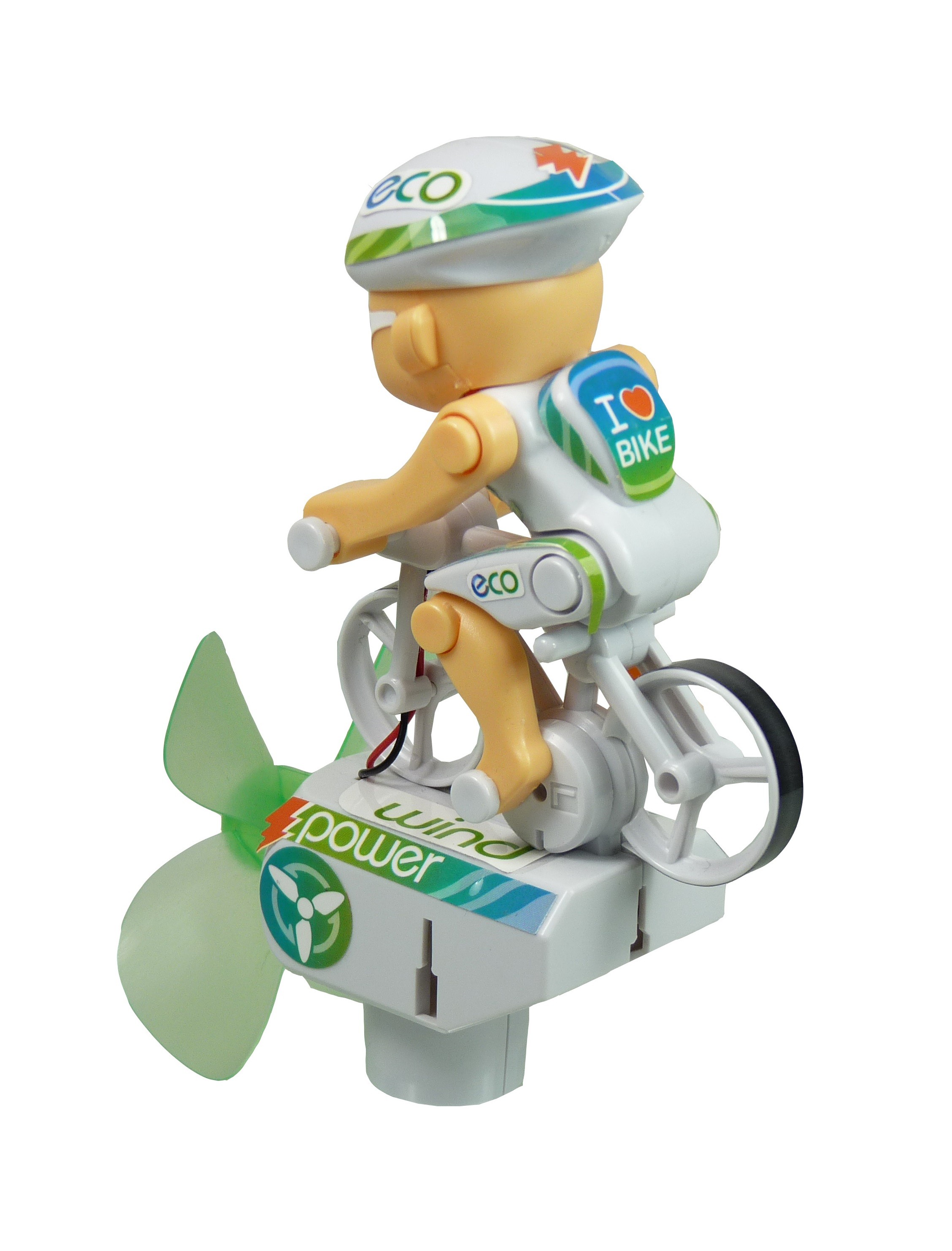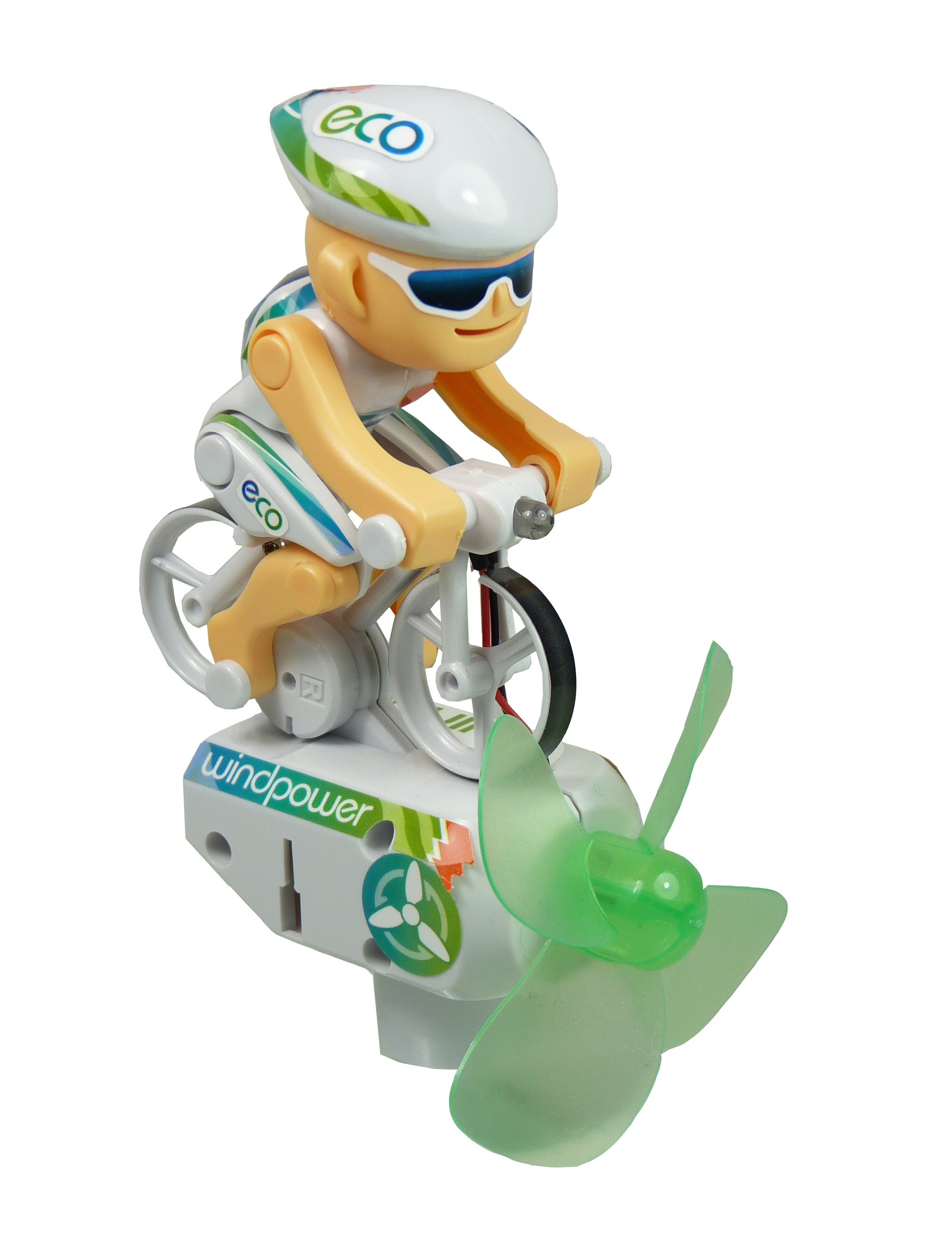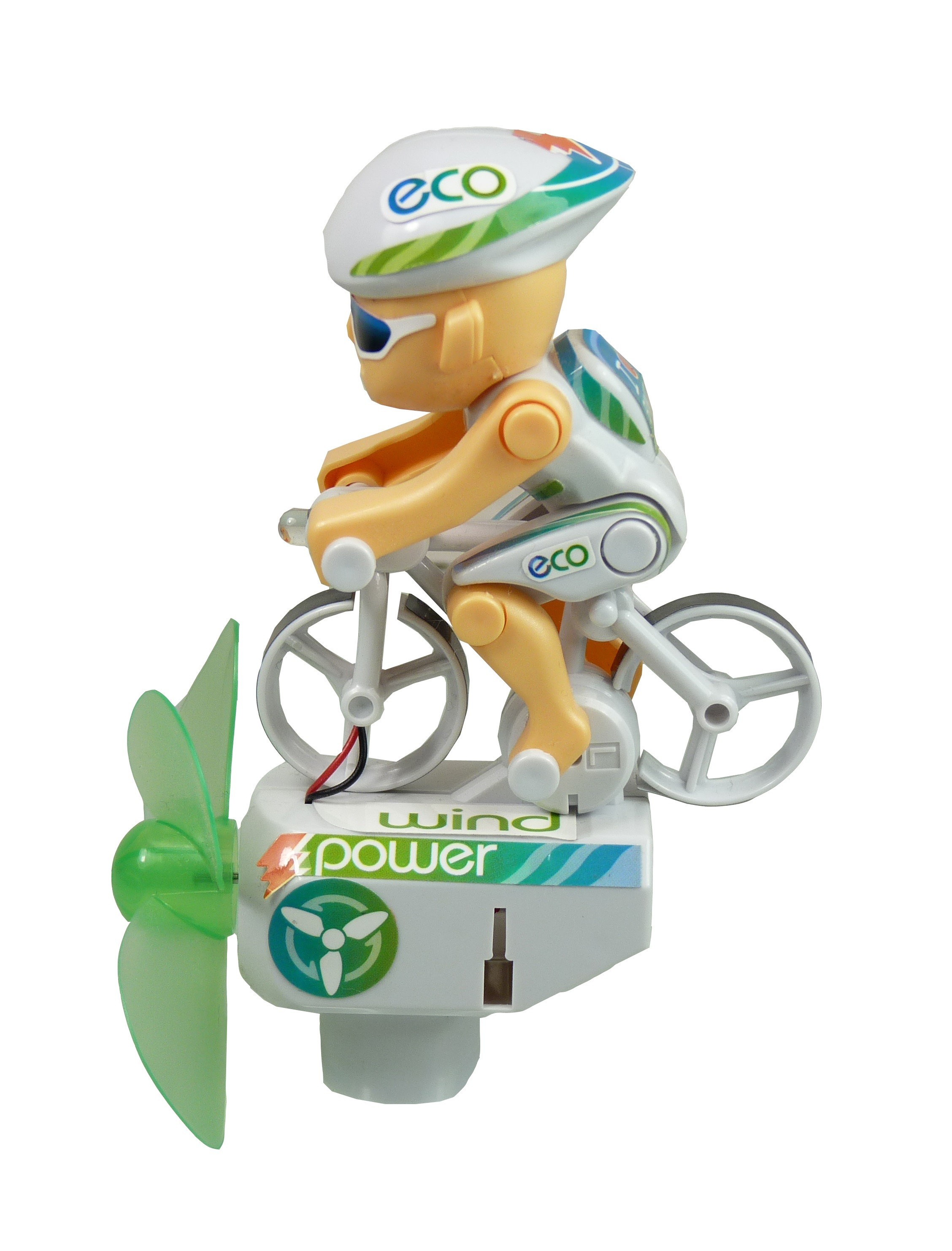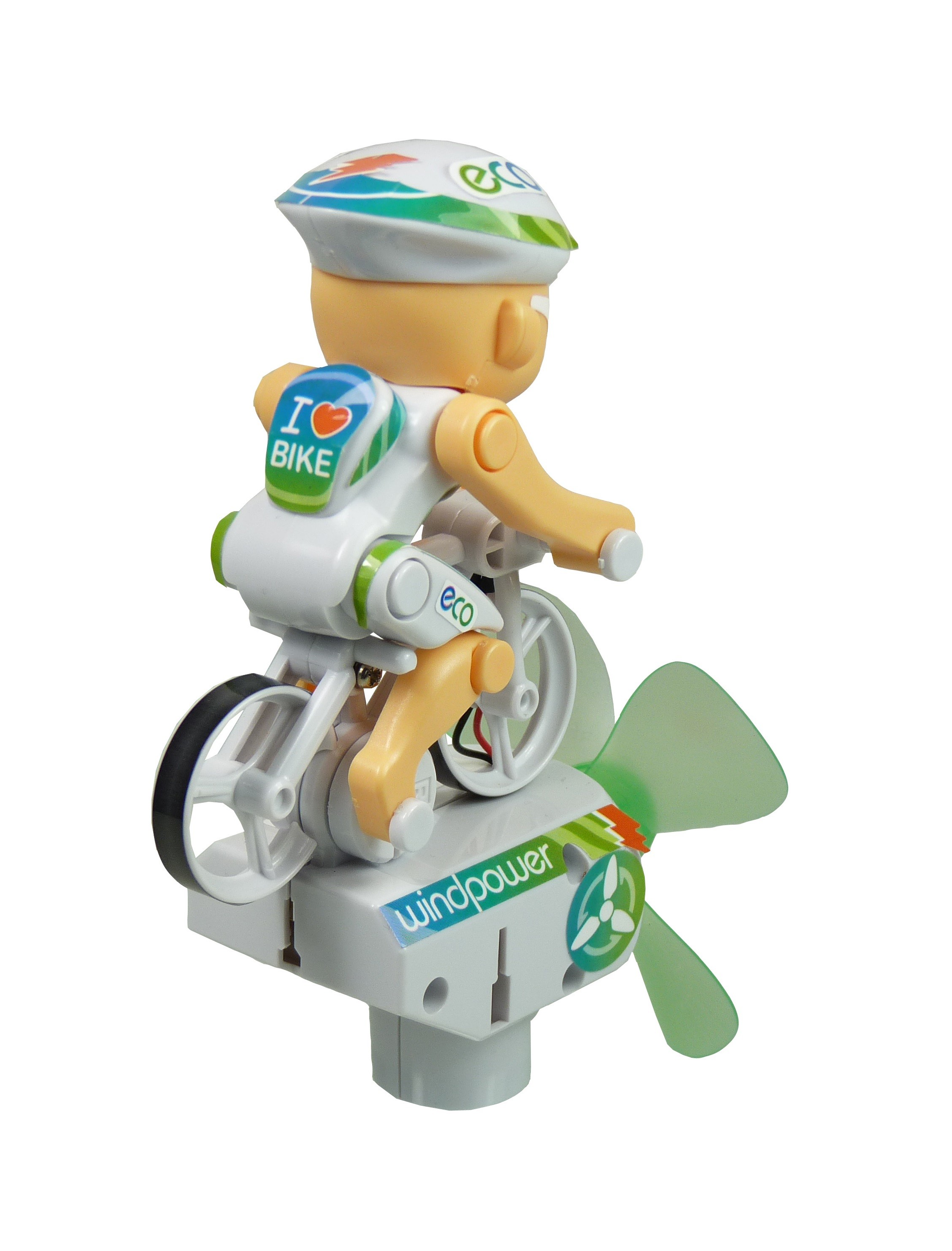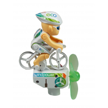 Le vélo avec élionne pédale en fonction de la vitesse du vent, plus le cycliste roule vite, plus le bonhomme sur le vélo va pédaler vite, un gadget amusant !