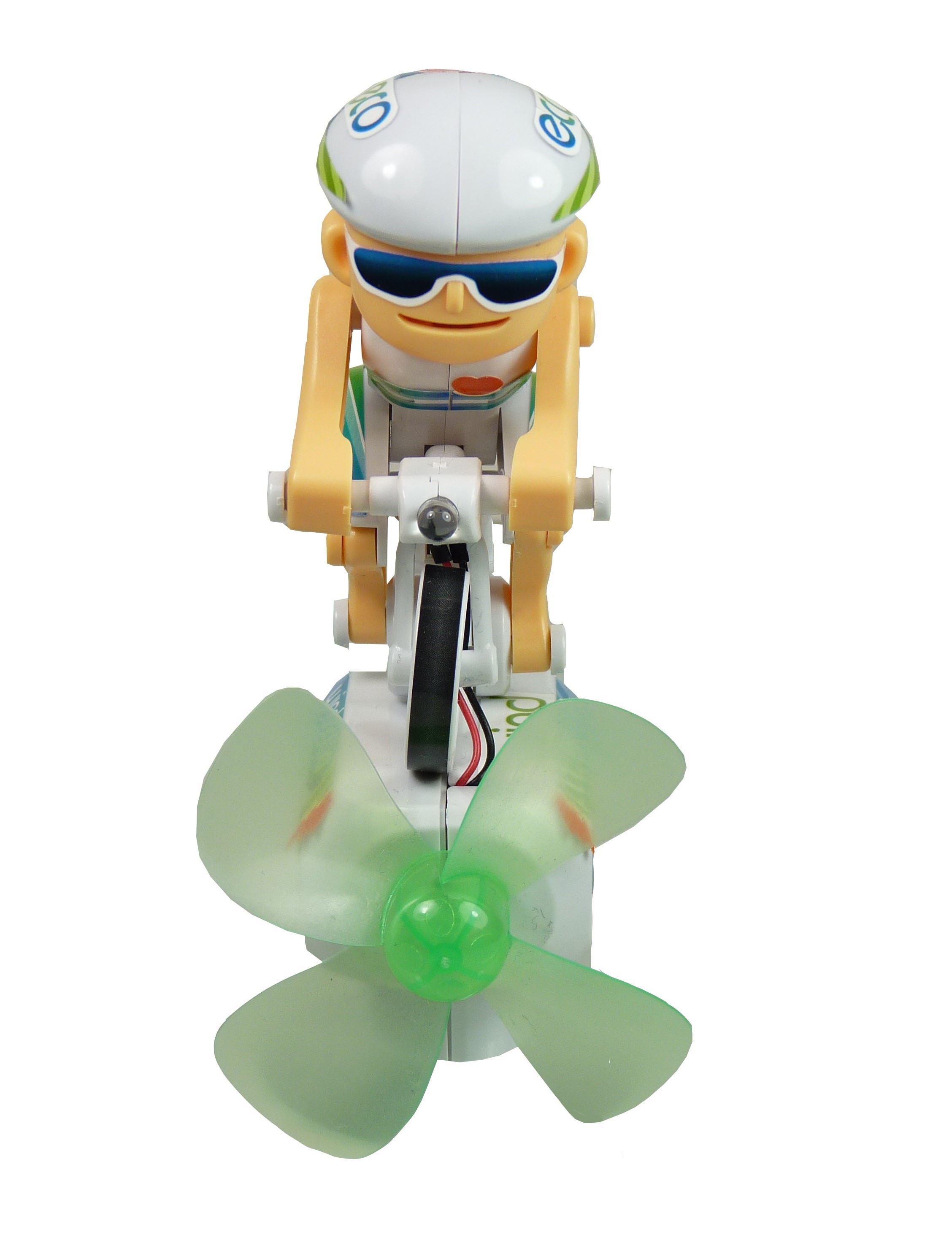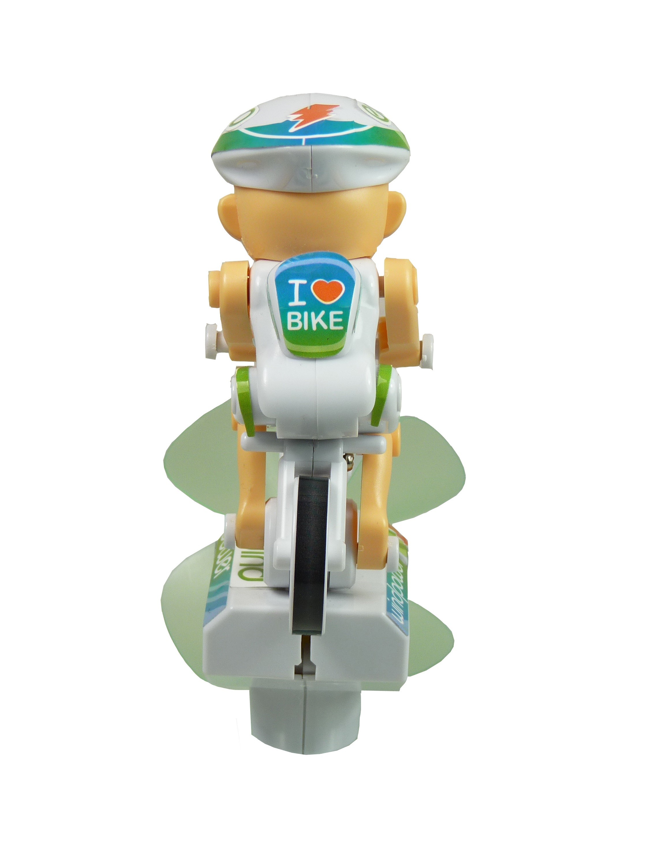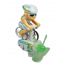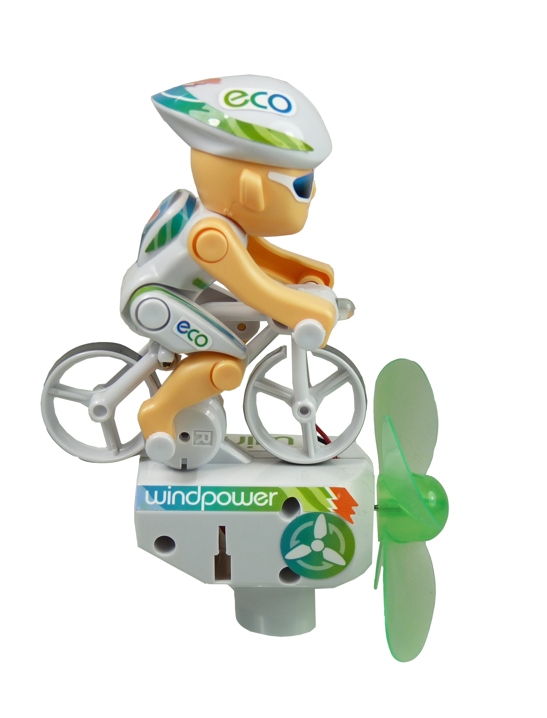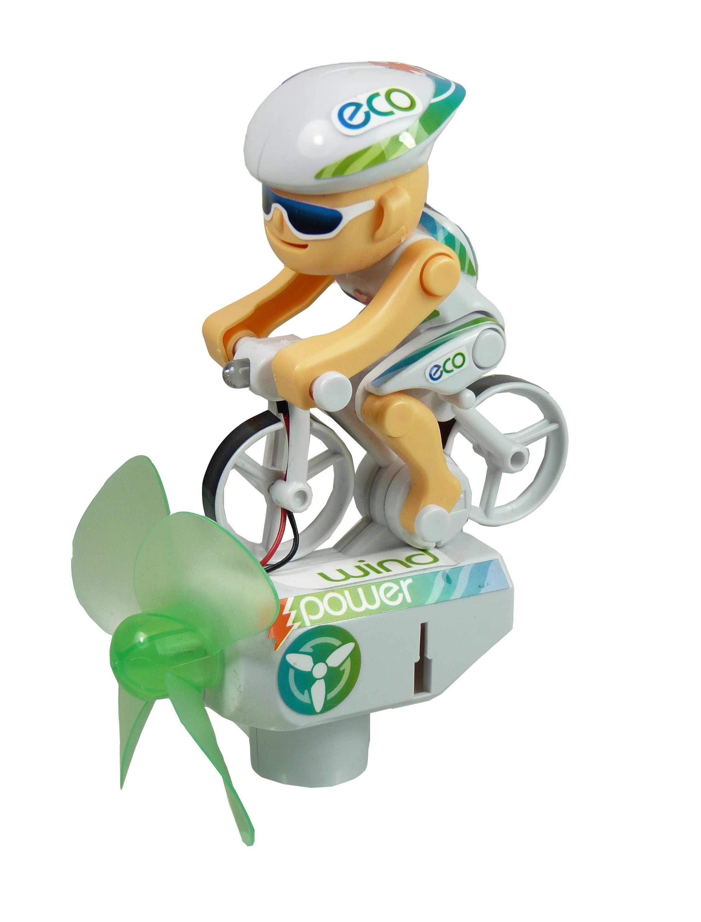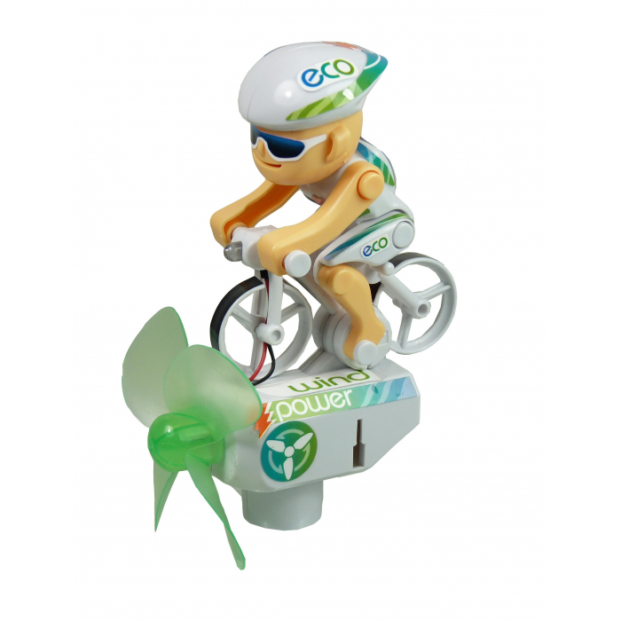 Le vélo avec élionne pédale en fonction de la vitesse du vent, plus le cycliste roule vite, plus le bonhomme sur le vélo va pédaler vite, un gadget amusant !