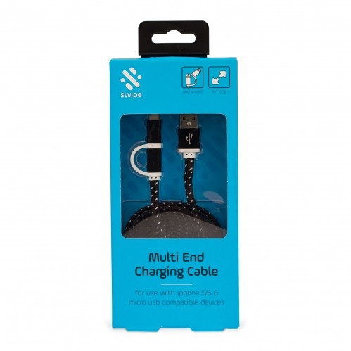 Câble universel à double connecteur compatible iPhone et micro USB (Samsung par exemple). Robuste et élégant, il se glissera dans votre sac et vous accompagnera dans tous vos déplacements.