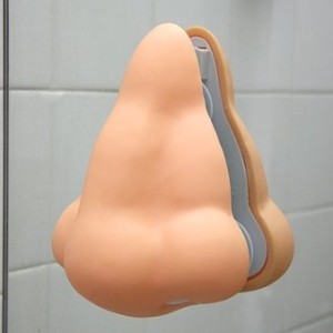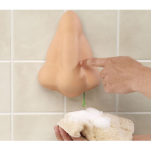 Mettez du fun dans votre salle de bain avec ce nez distributeur de gel douche, pressez le nez et le gel douche sortira d'une narine !