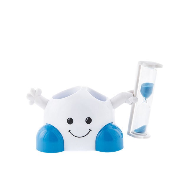 Bonhomme support de dentidrice et brosse à dents avec minuteur sablier intégré