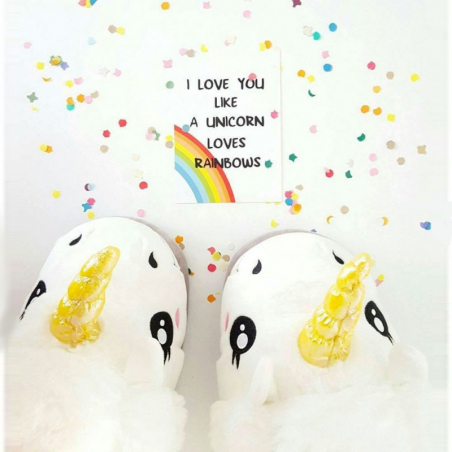 Un petit cadeau original et trop mignon, pour avoir les pieds au chaud mais avec classe ! Toujours plus de féérie et de magie avec ces chaussons moelleux et confortables à l'effigie de la célèbre Licorne.