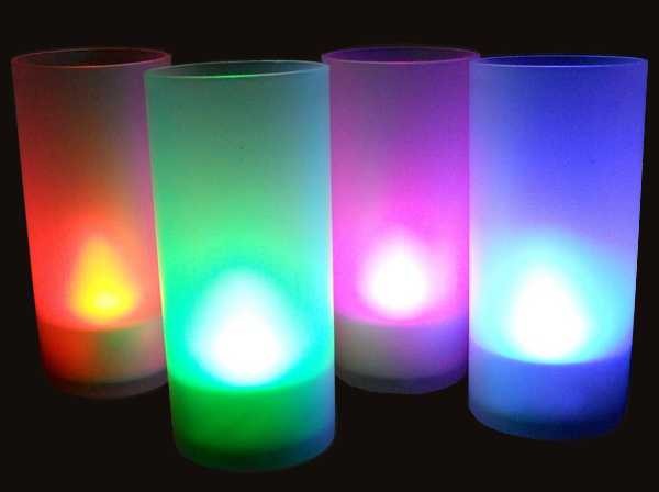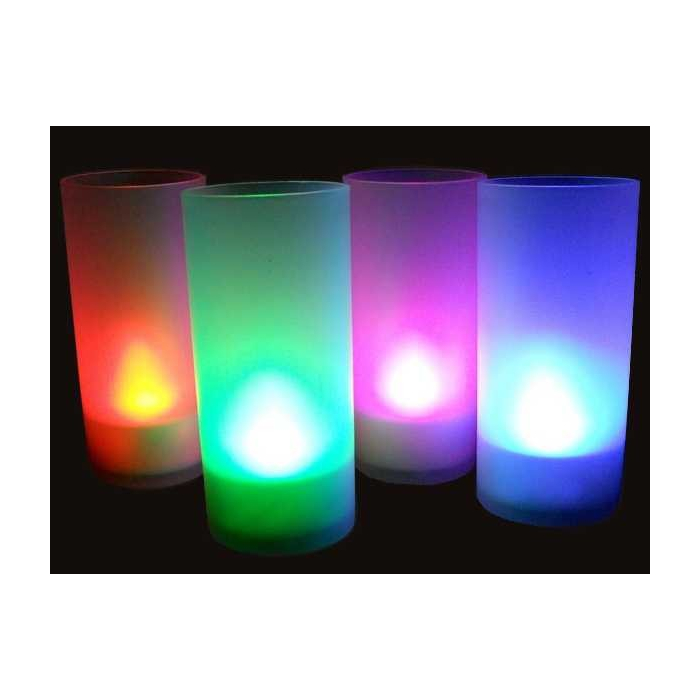 La fausse bougie dans un photophore avec des couleurs changeantes peut décorer votre intérieur sur une étagère, un meuble...