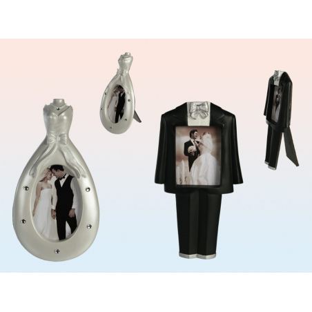 Nous vous proposons ce cadre photo en forme de robe ou de costume de marié.