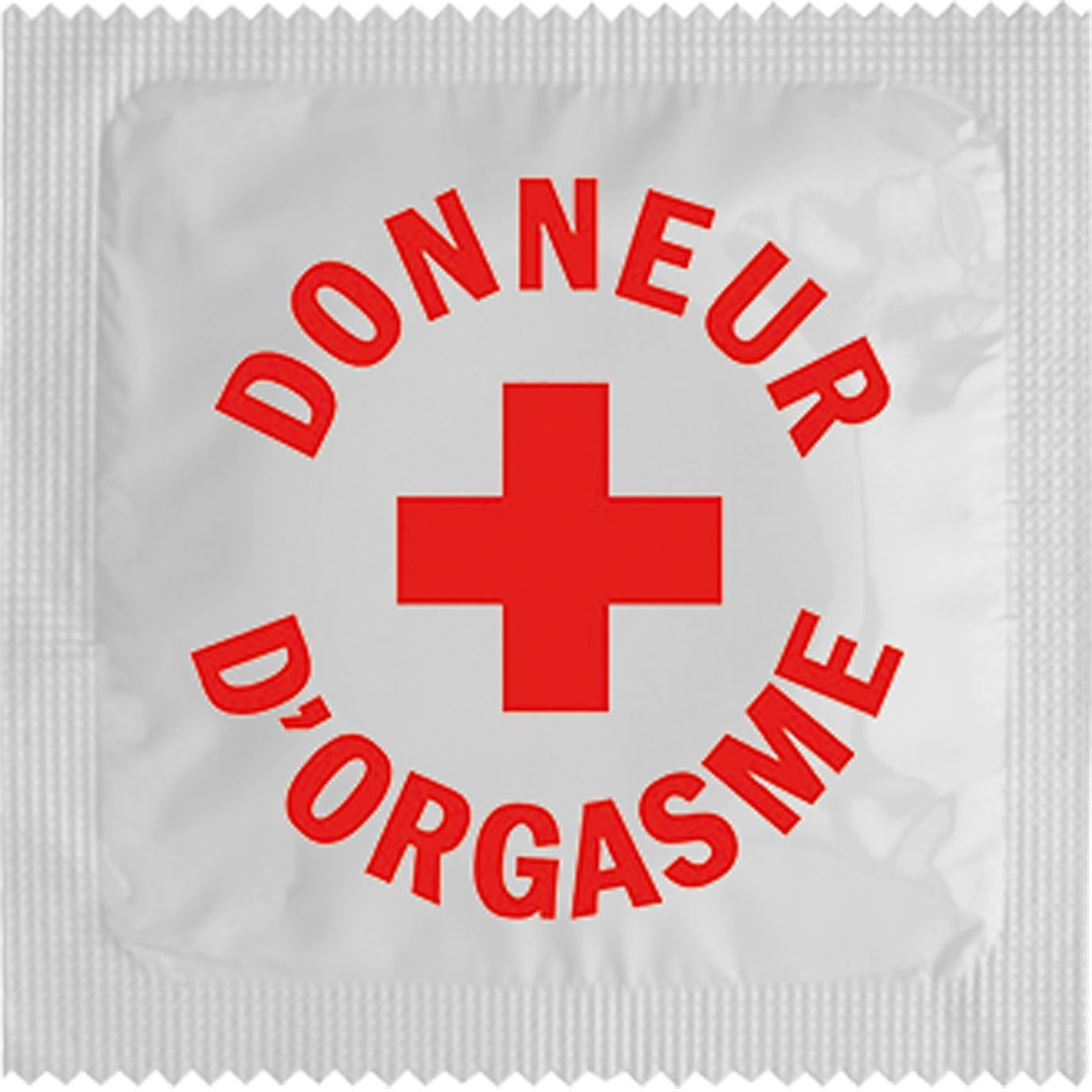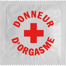 Le préservatif humoristique représente le logo de la "croix rouge".