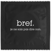 Ce préservatif humoristique est inspiré de la célèbre série Bref, il est marqué "Bref, je ne sais pas dire non."