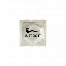 Va y avoir du sport ! A l'image de la marque de sport, le préservatif humoristique JUST DO IT chromé en latex. Fabriqué en France aux normes NF et CE. Vendu à l'unité.
