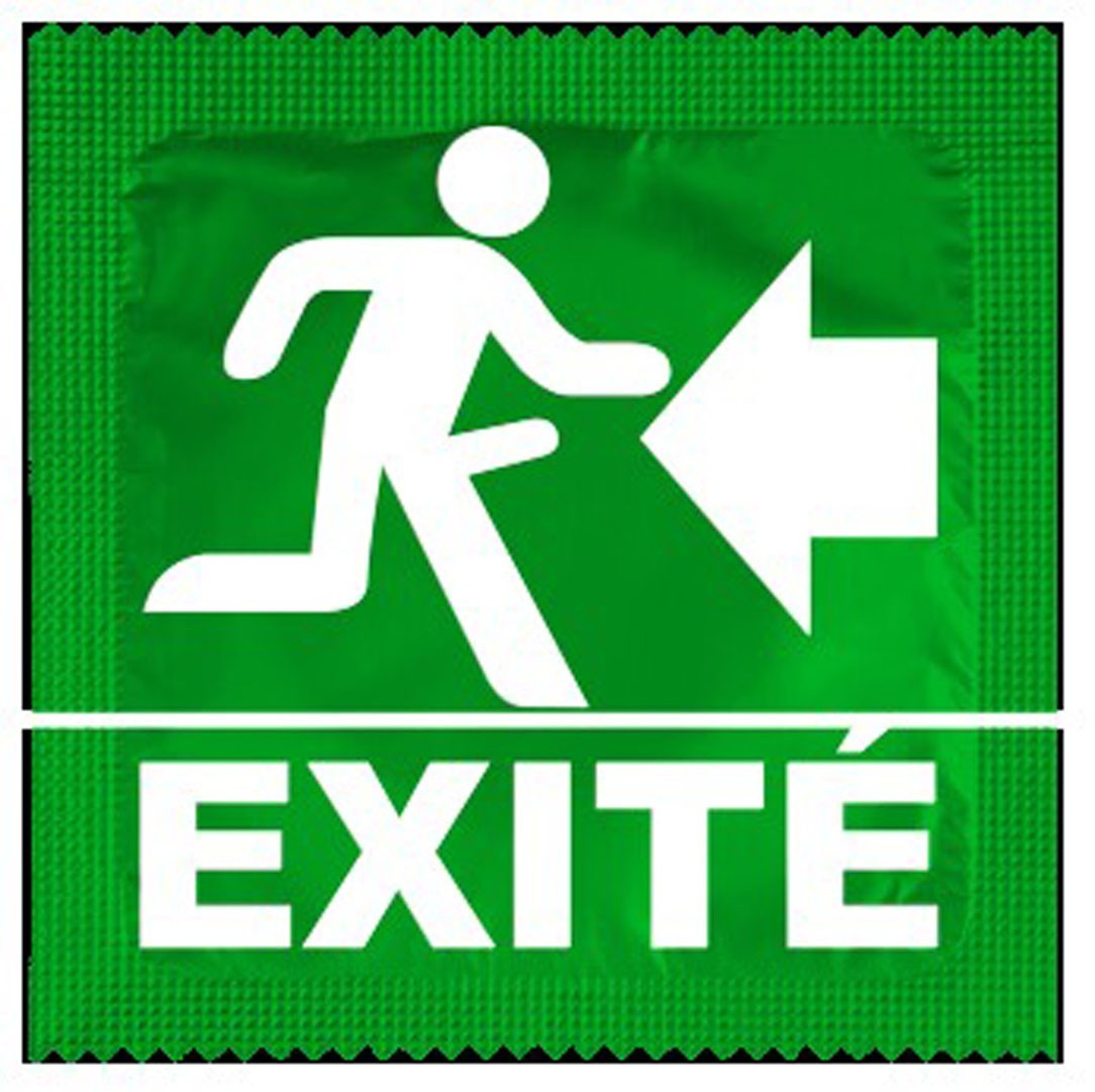 Ce préservatif humoristique exité est largement inspiré d'un panneau sortie de secours marqué EXIT.
