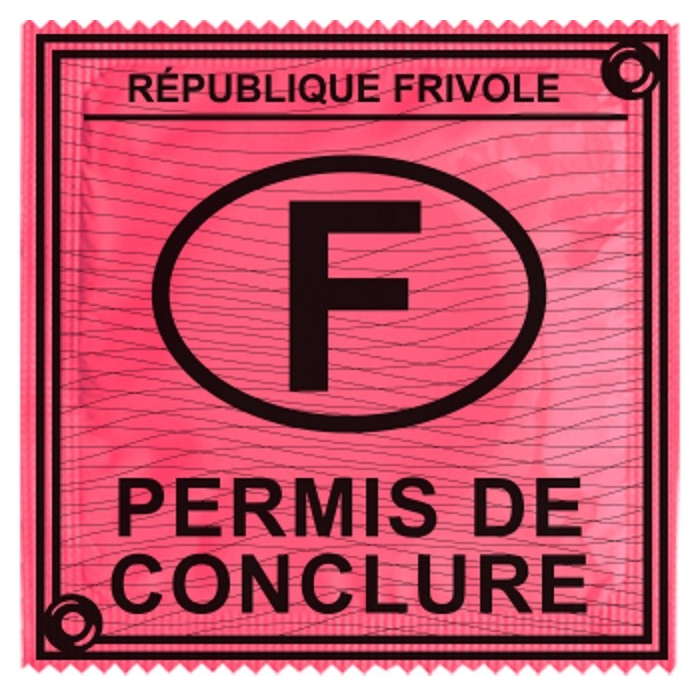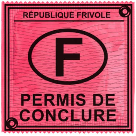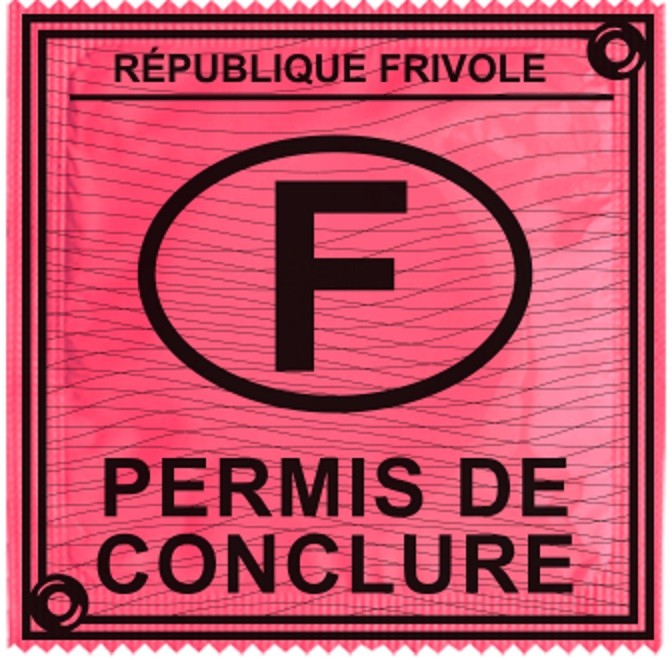 Ce préservatif humoristique permis de conclure est inspiré d'un permis de conduire mais à la place de république française est écrit "république frivole".