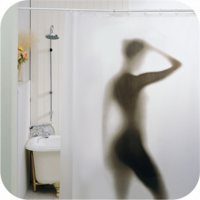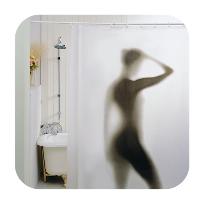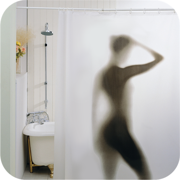 Un rideau de douche original avec une silhouette sexy de femme nue qui prend sa douche !