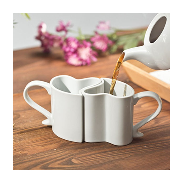 Vous êtes à court d'idées cadeaux pour déclarer votre flamme. Voici deux élégantes tasses qui s'entrelacent à l'image de votre relation amoureuse. Chaque matin au petit déjeuner ou tous les soirs à l'heure de la tisane votre couple se rapprochera comme ces 2 mugs coeur romantiques.