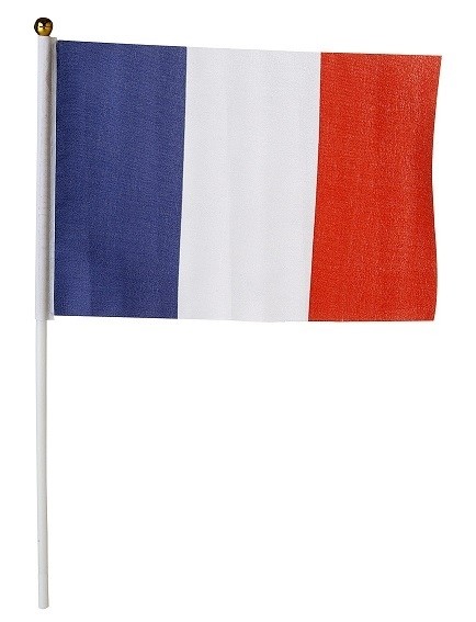 Le drapeau français se tient facilement en main grâce à sa tige.