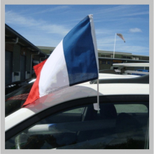 Lot de 2 drapeaux français bleu, blanc et rouge pour voiture. Le drapeau se pose facilement sur la vitre d'une voiture.