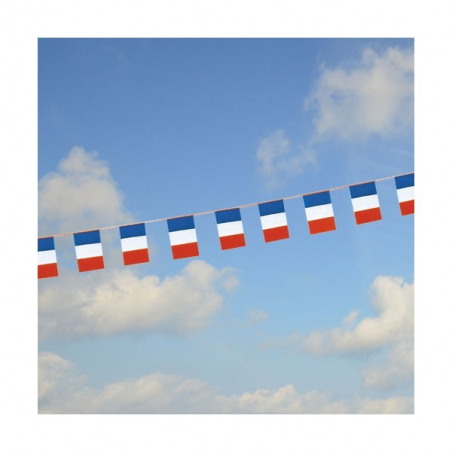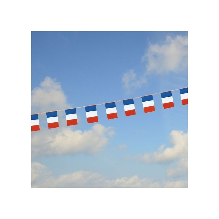Décorez votre intérieur aux couleurs de l'équipe de France avec cette guirlande France composée de 9 drapeaux français bleu blanc rouge 22x14cm en polyéthylène sur 2.40 m.