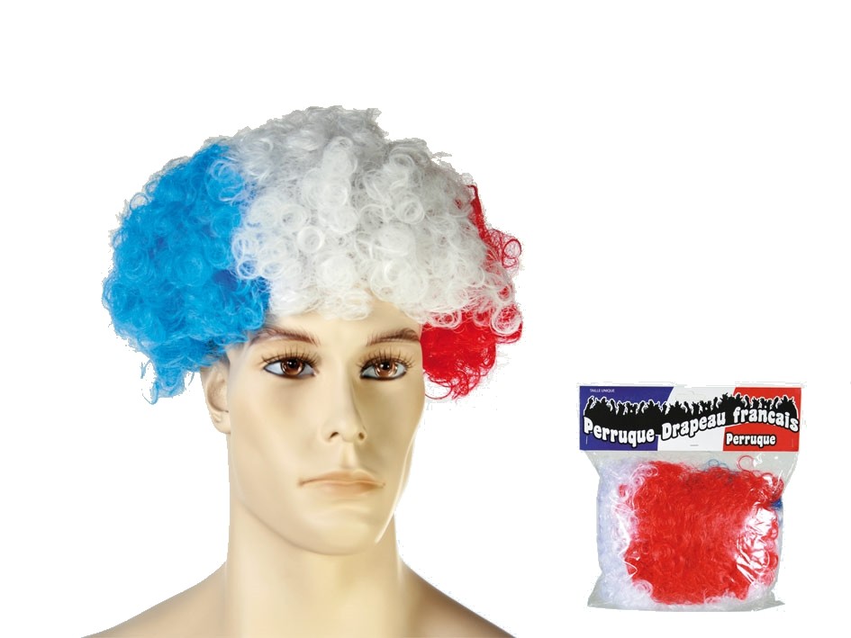 La perruque tricolore bleu blanc rouge est livrée dans un sachet polyester.