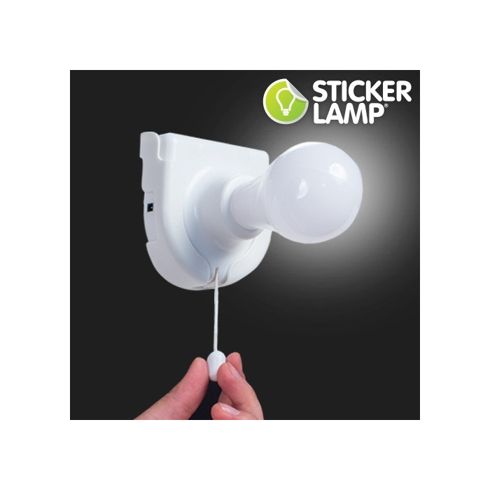 L'ampoule à tirette se colle (autocollant fournit) sur la base ou se visse selon votre choix.