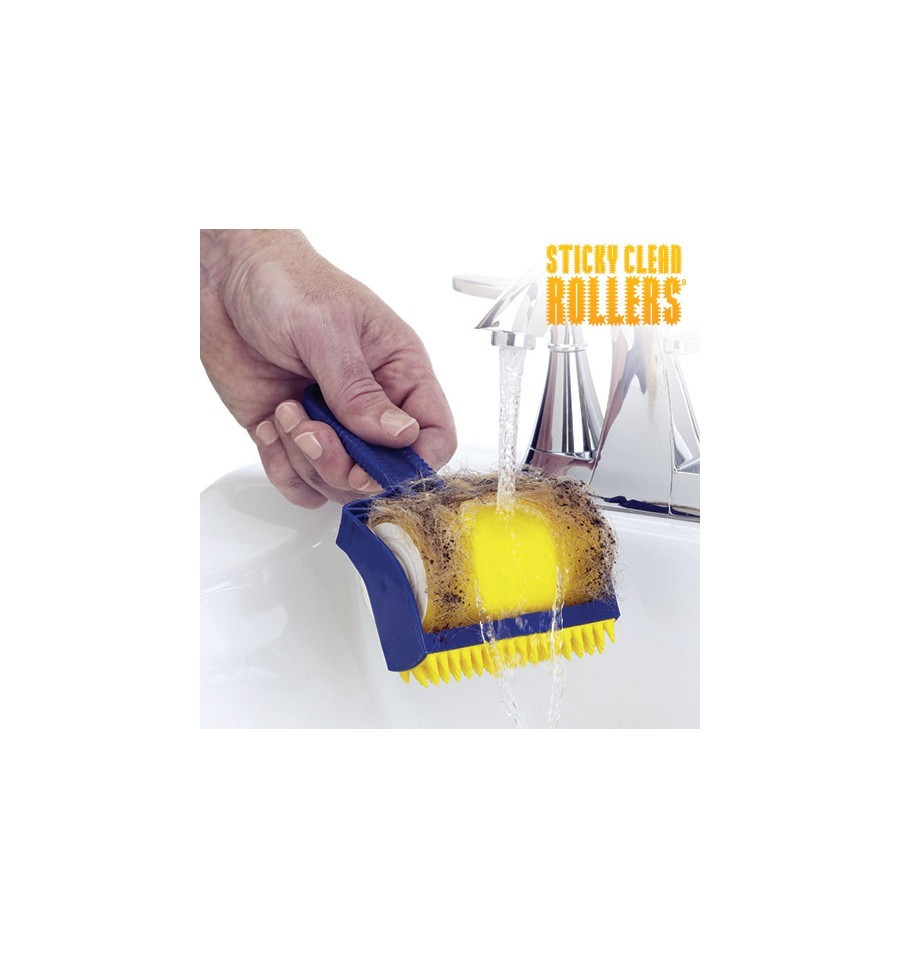 Tandis que la surface collante du rouleau attrape toute la saleté qui reste collée aux vêtements, aux tissus, aux tapisseries et aux autres surfaces (idéal pour les cheveux, les poils des animaux de compagnie, les miettes...).