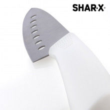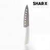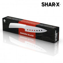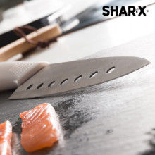 Découvrez une façon facile et sûre de couper avec le couteau japonais avec des trous Samurai Blade ! Shar·X présente ce couteau inspiré de ceux utilisés par les grands chefs japonais. Il dispose de sept trous dans la lame qui réduisent la friction lors de la coupe, permettant de découper les aliments plus facilement et en toute sécurité.