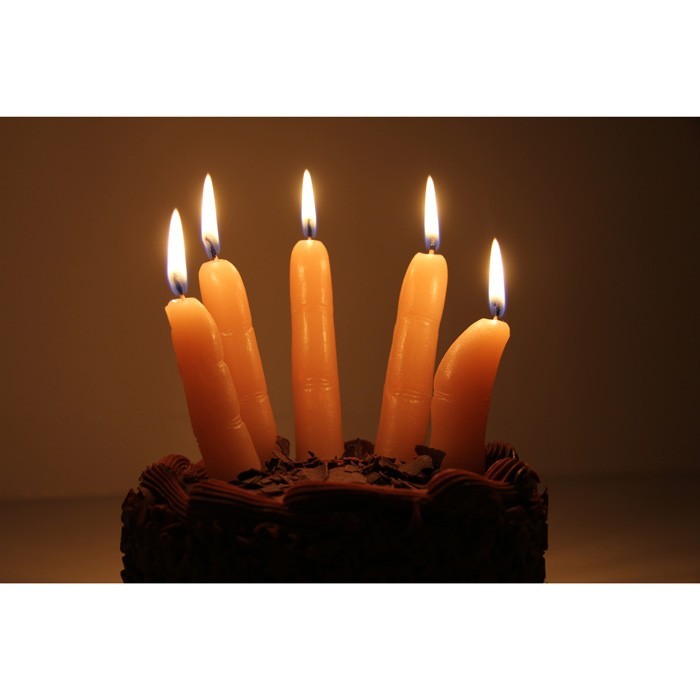 Lot de 5 bougies originales en forme de doigts de la main avec phalanges et ongles, ces bougies en cire vont surprendre la personne qui les souffle !
