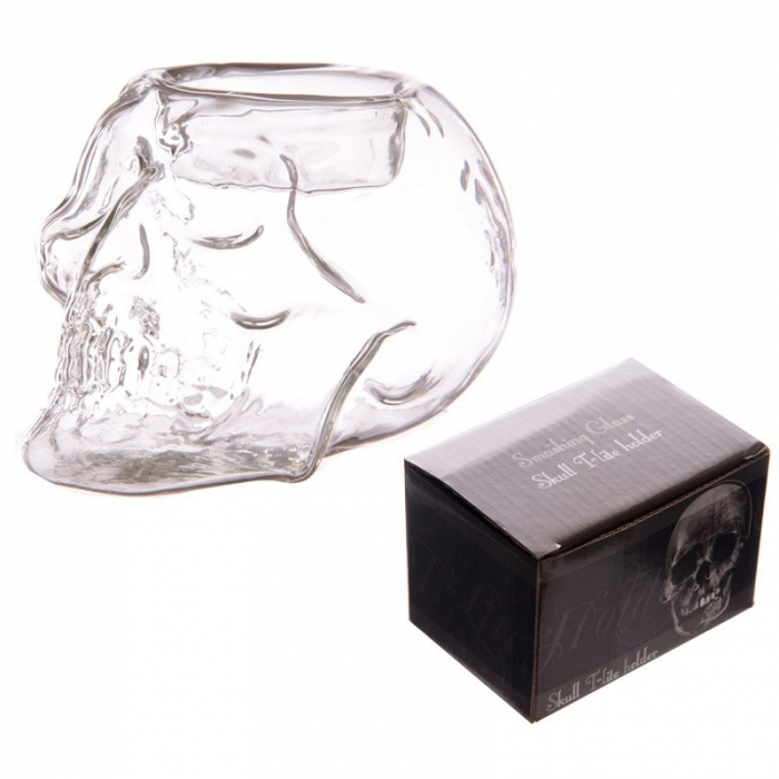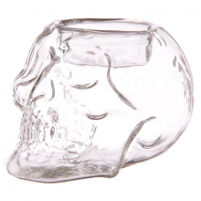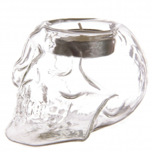 Un crâne en verre pour mettre une bougie de type chauffe-plat. Un bougeoir original en forme de crâne et tete de mort !