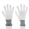Les gants émettent de la lumière de différentes couleurs au bout des doigts.
