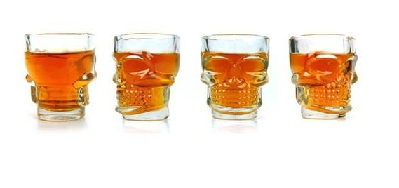 Nous vous proposons ce lot de 4 verres à alcool tête de mort en relief intérieur.