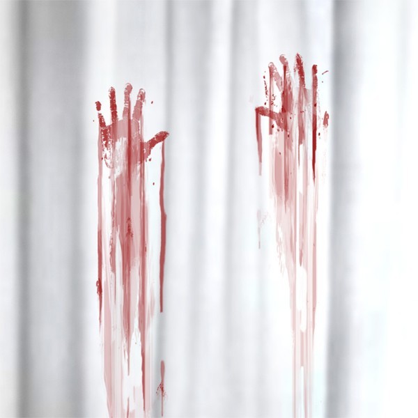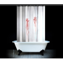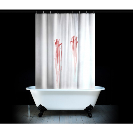 Ce rideau de douche meurtre représente deux mains ensanglantées qui essaient de s'accrocher au rideau !