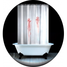 Complétez ce rideau de douche avec le tapis de bain meurtre pour avoir la panoplie complète !