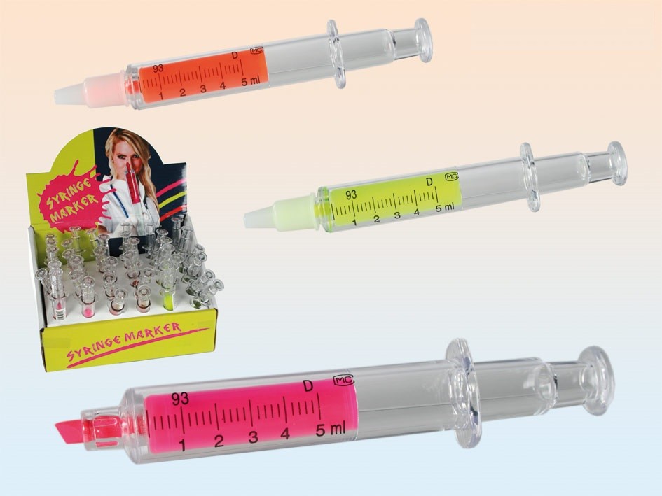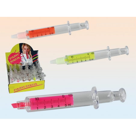 Seringue marqueur fluo surligneur, plusieurs coloris, un cadeau original et amusant !