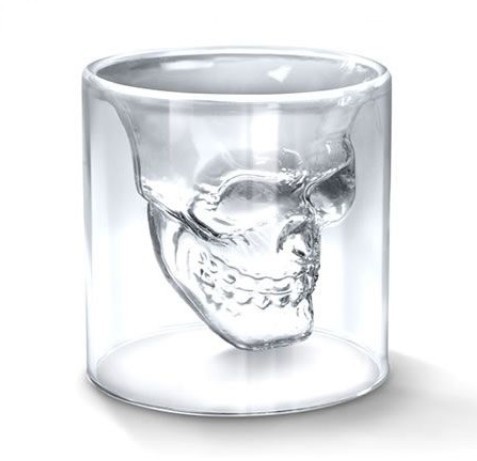 Nous vous proposons ce verre à alcool tête de mort en relief intérieur.