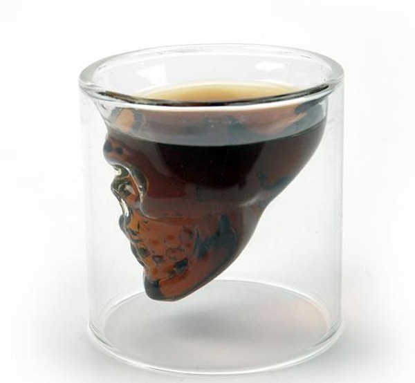 Ce verre en forme de tête de mort vous rappellera que l'alcool est dangereux pour la santé !