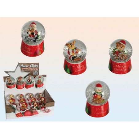 La boule à neige dispose de 4 figurines différentes (renne sur un traineau, père noël, ours, bonhomme de neige) livrées aléatoirement suivant arrivage.