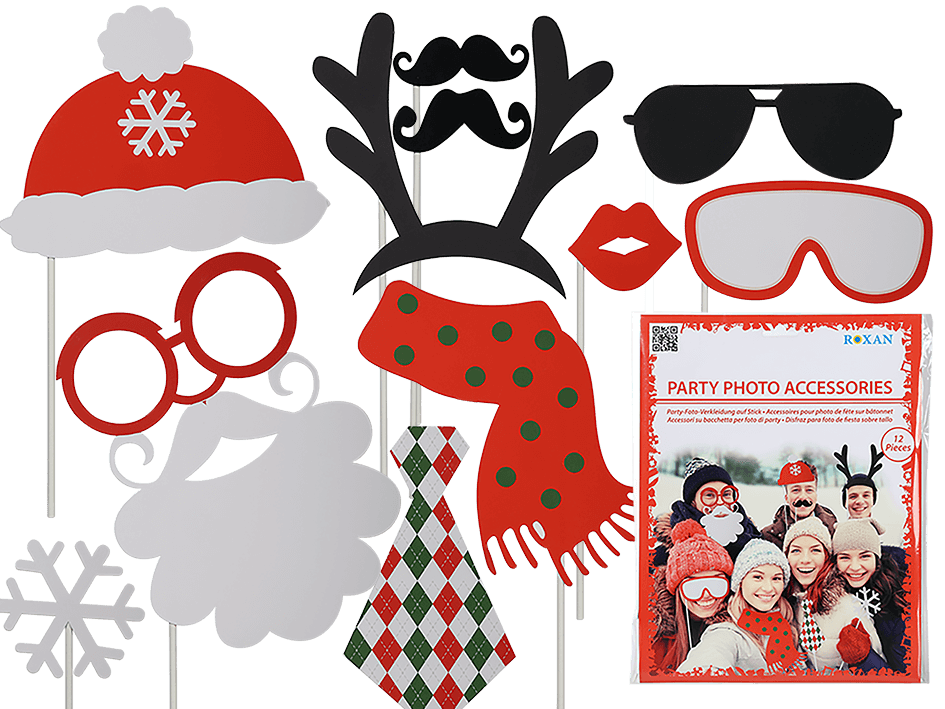 Kit de 12 accessoires de PhotoBooth, pour une séance photo fun et décalée sur le thème festif Noël.