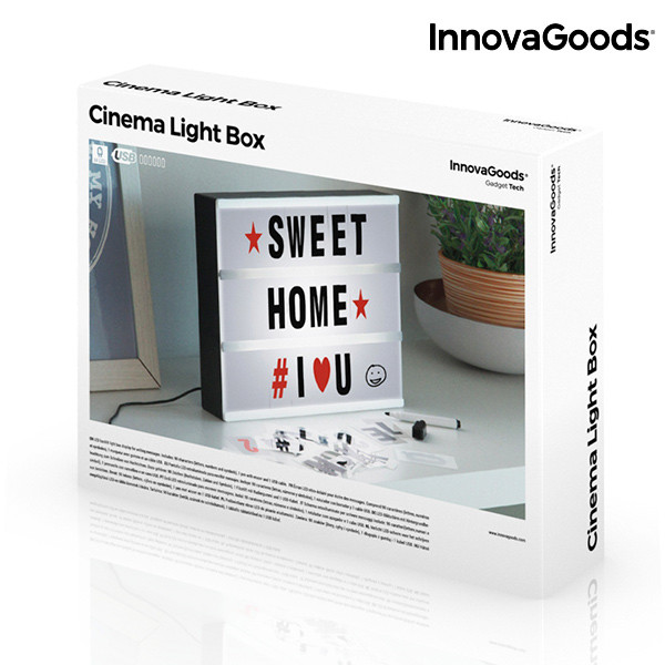 Nous vous présentons le nouvel écran LED pour écrire des messages Cinéma InnovaGoods Gadget Tech ! Une lightbox très pratique pour écrire tous types de messages, rappels, phrases motivantes, citations inspirantes, etc. Cette boîte lumineuse qui est idéale comme décoration originale des chambres, salons, bureaux ou tout autre endroit en ayant besoin.
