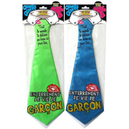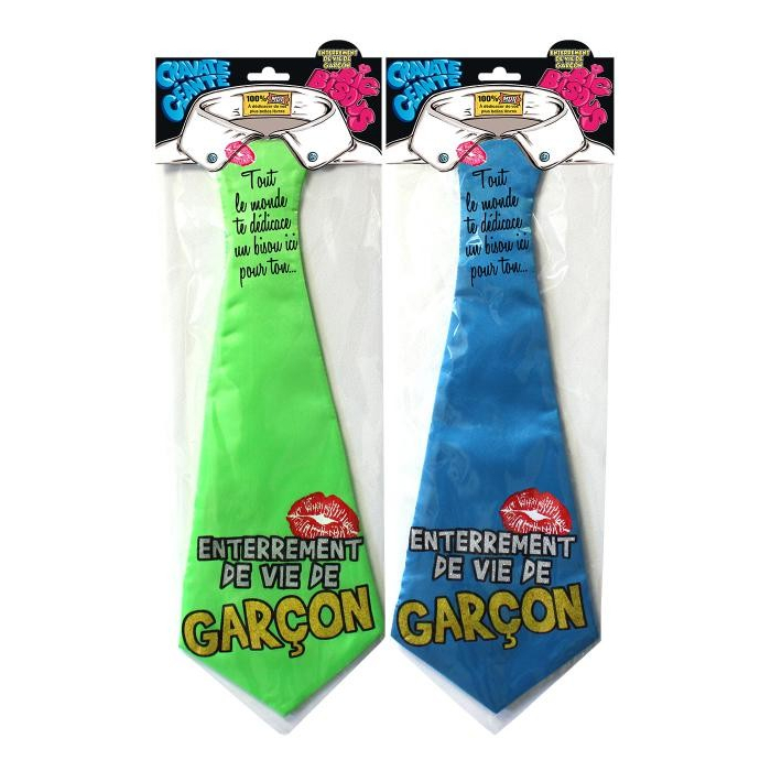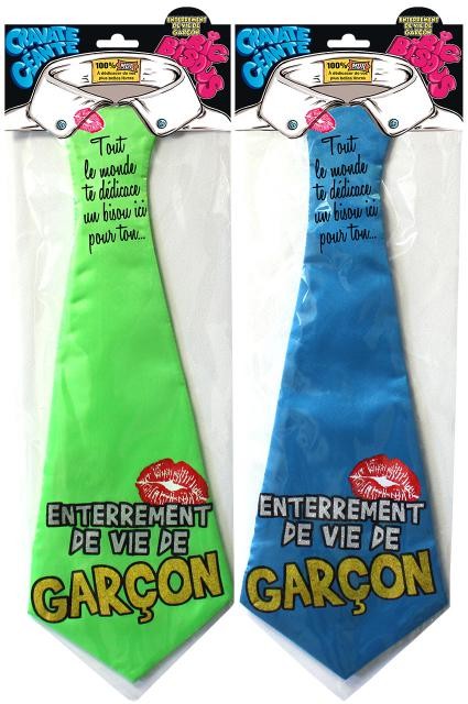 La cravate géante est de couleur bleue ou verte (envoyée aléatoirement).