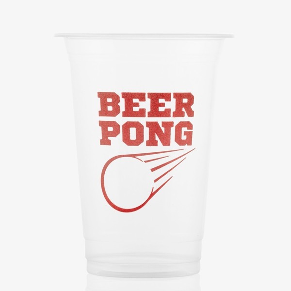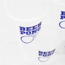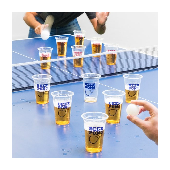 Le jeu de bière-pong comprend 12 gobelets en plastique marqués "BEER PONG" d'une capacité de 400 ml et 2 balles de ping-pong.