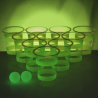 Le jeu de bière-pong comprend 22 gobelets phosphorescents en plastique d'une capacité de 50 cl et 2 balles de ping-pong lumineuses.