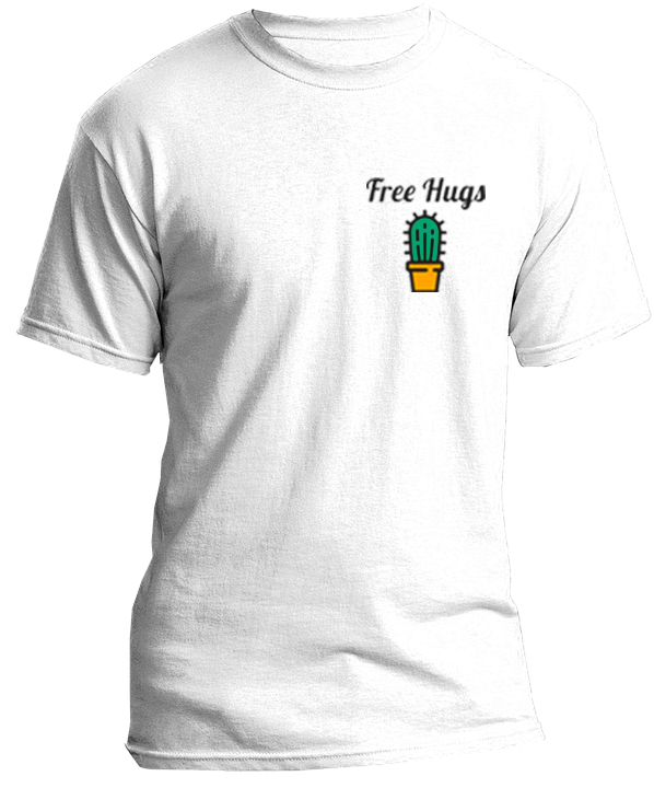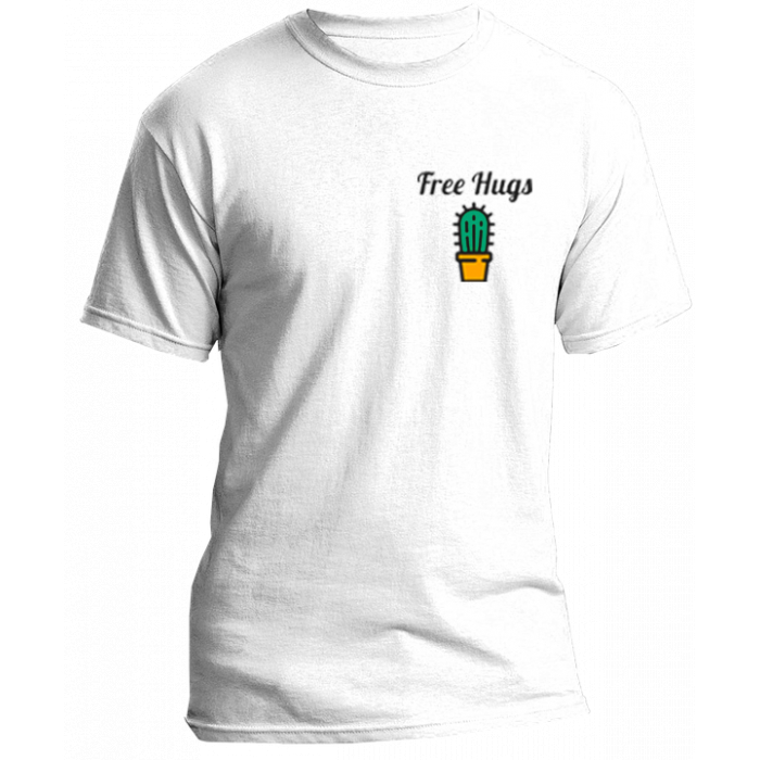 T-Shirt blanc à écusson Free Hugs ! Une idée cadeau qui en dit long.