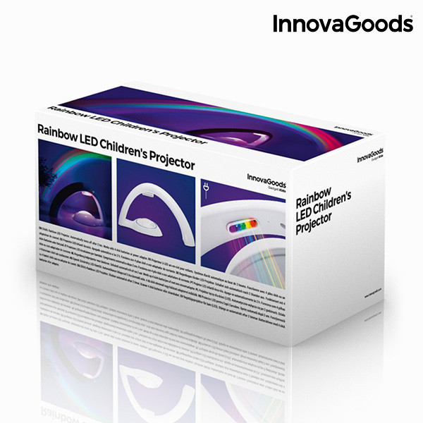 Découvrez le projecteur LED pour Enfant Arc-en-ciel InnovaGoods Gadget Kids, un cadeau pour enfants très spécial ! Cette veilleuse originale projecte un arc-en-ciel sur le mur et le plafond. Parfait pour que les enfants s'endorment sans avoir peur de l'obscurité, tranquillement et distraits.