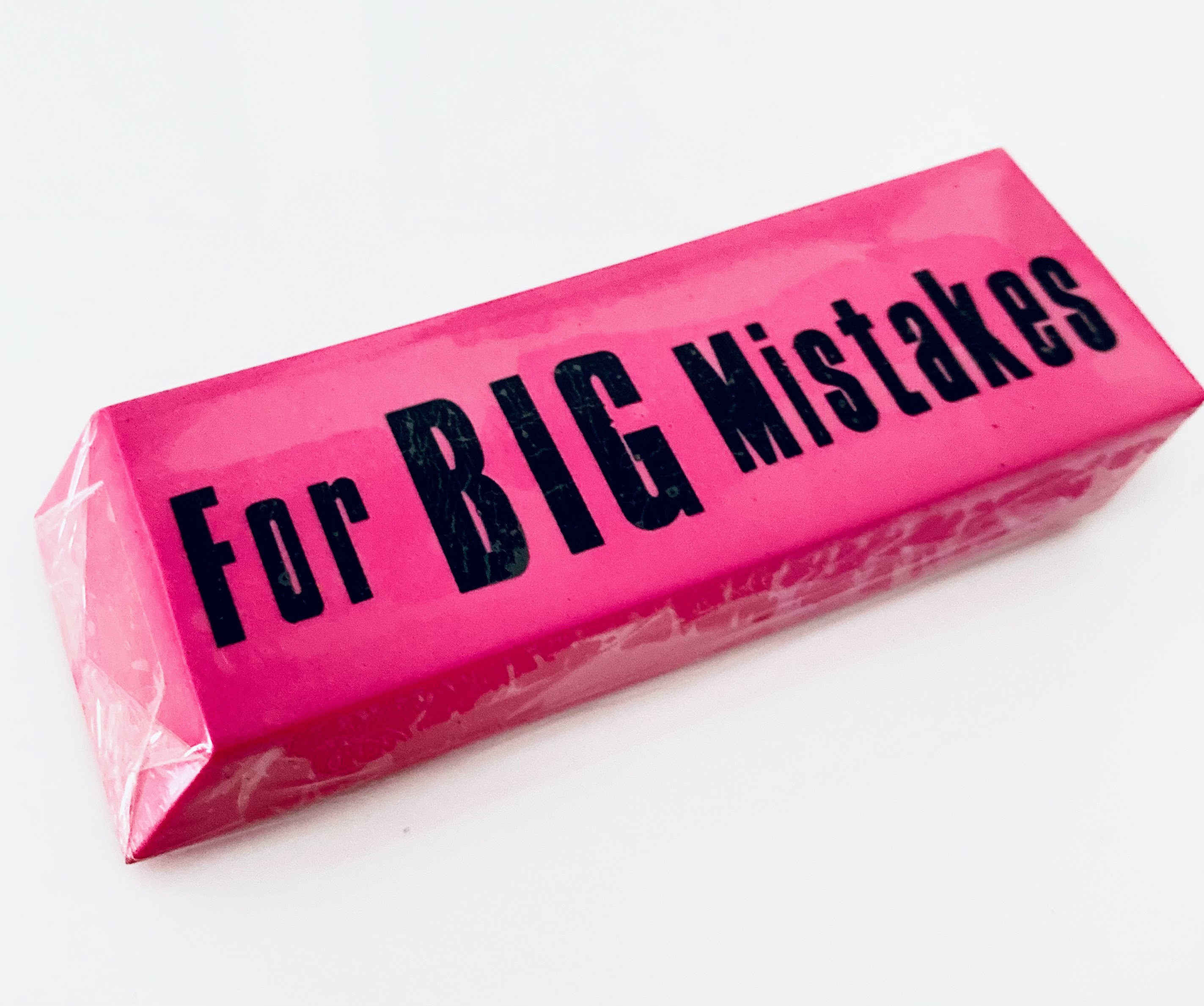 La gomme géante est un cadeau humoristique pour petits et grands qui sert à effacer les grosses fautes !