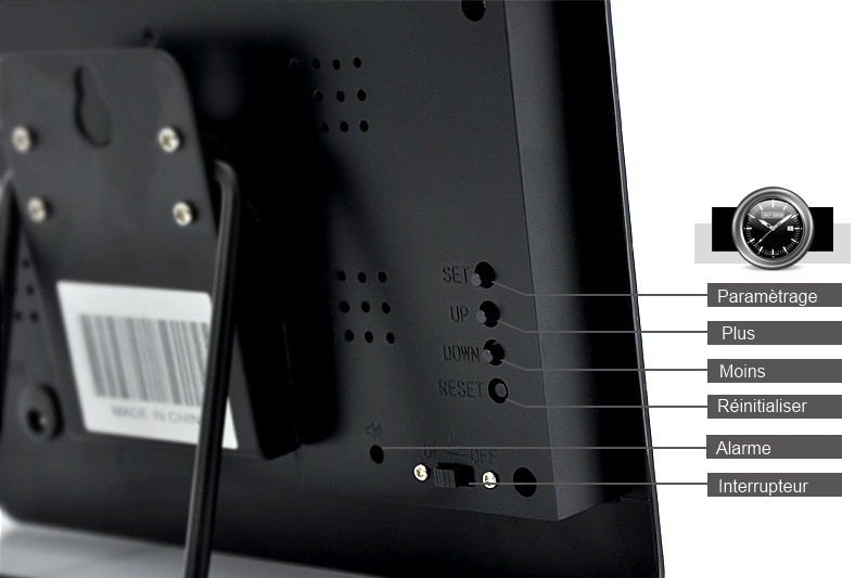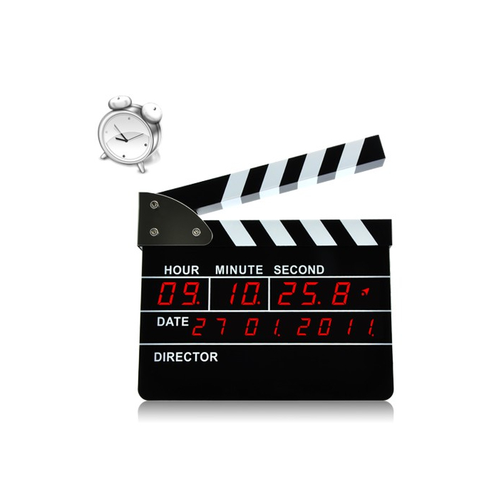 Le clap de cinéma est muni d'une fonction réveil programmable.