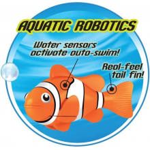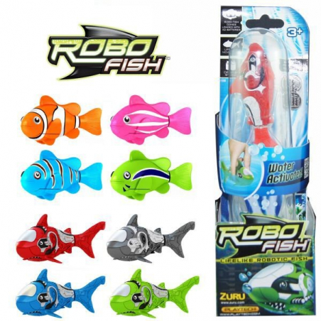 Le poisson robot (robo fish) nage automatiquement au contact de l'eau en faisant des mouvements réalistes.