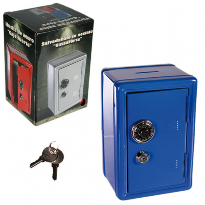 Vous n'avez pas envie de déposer votre argent dans le coffre fort de la banque, alors mettez vos économies dans votre tirelire coffre fort. A fermer avec une clé c'est plus sûr !