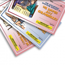 Le carnet comporte 10 coupons illustrés par des dessins rigolos.