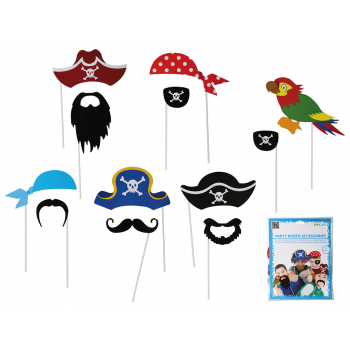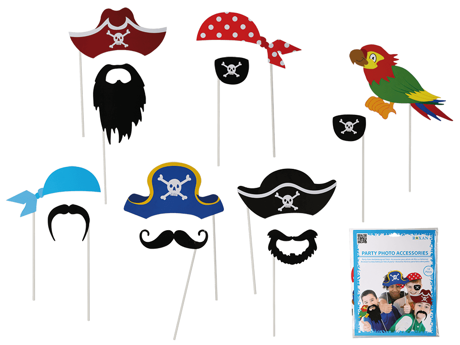 Kit de 12 accessoires de PhotoBooth, pour une séance photo fun et décalée sur le thème des pirates.