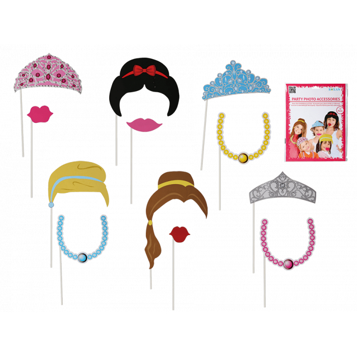 Kit de 12 accessoires de PhotoBooth, pour une séance photo fun et décalée sur le thème des Princesses.