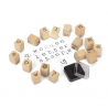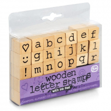 Ce lot de 31 tampons en bois contient les 26 lettres de l'alphabet ainsi que 3 caractères spéciaux « ! », « ? », « @ » et 2 symboles « Smiley » et « cœur ».