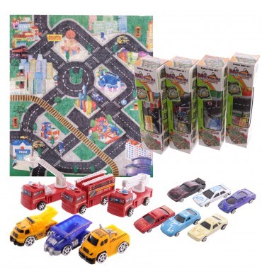Le tapis de jeu est livré avec deux véhicules (voitures, camions...)