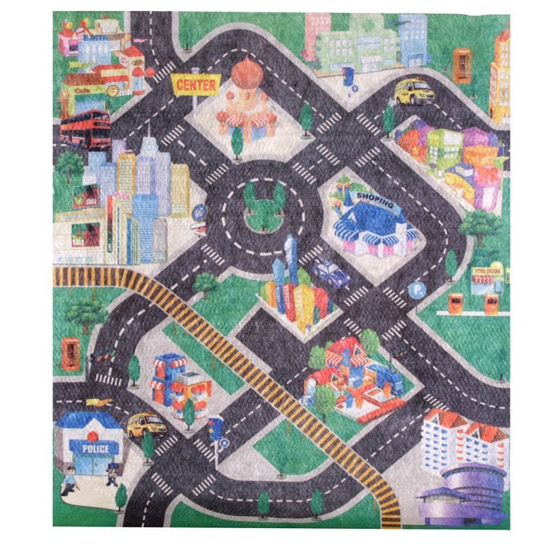 Un tapis de jeu pour les enfants avec des véhicules pour s'amuser à circuler sur les routes du tapis de jeu tout en s'amusant.